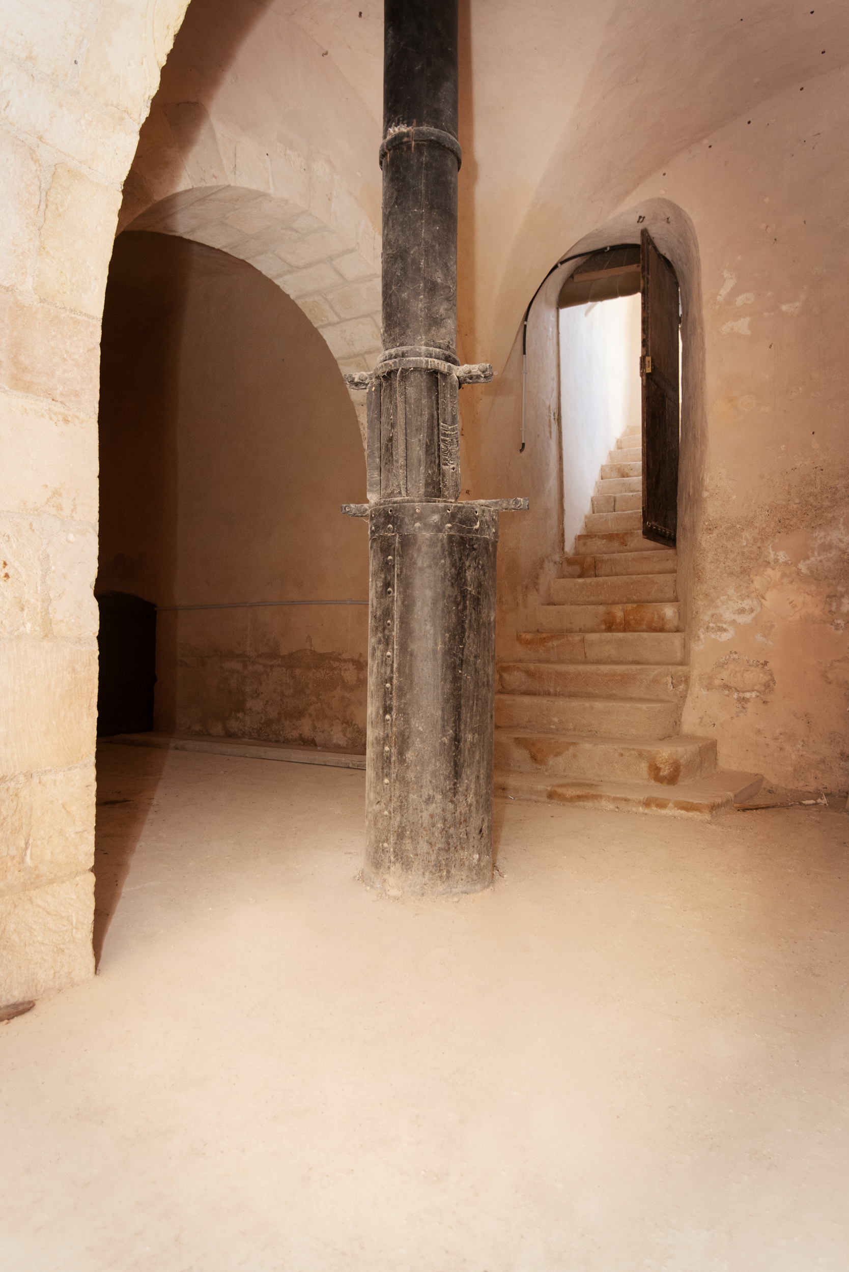 Si la tour existe toujours, l’ascenseur a disparu. Néanmoins, la très belle cave du logis abrite encore un vestige méconnu de son ascenseur : la colonne d’eau.